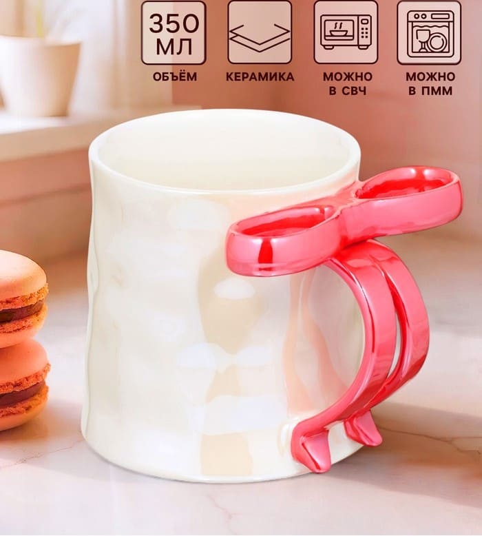 Кружка 350 ид "Бантик" 8,5х9 см красный бант 10884552