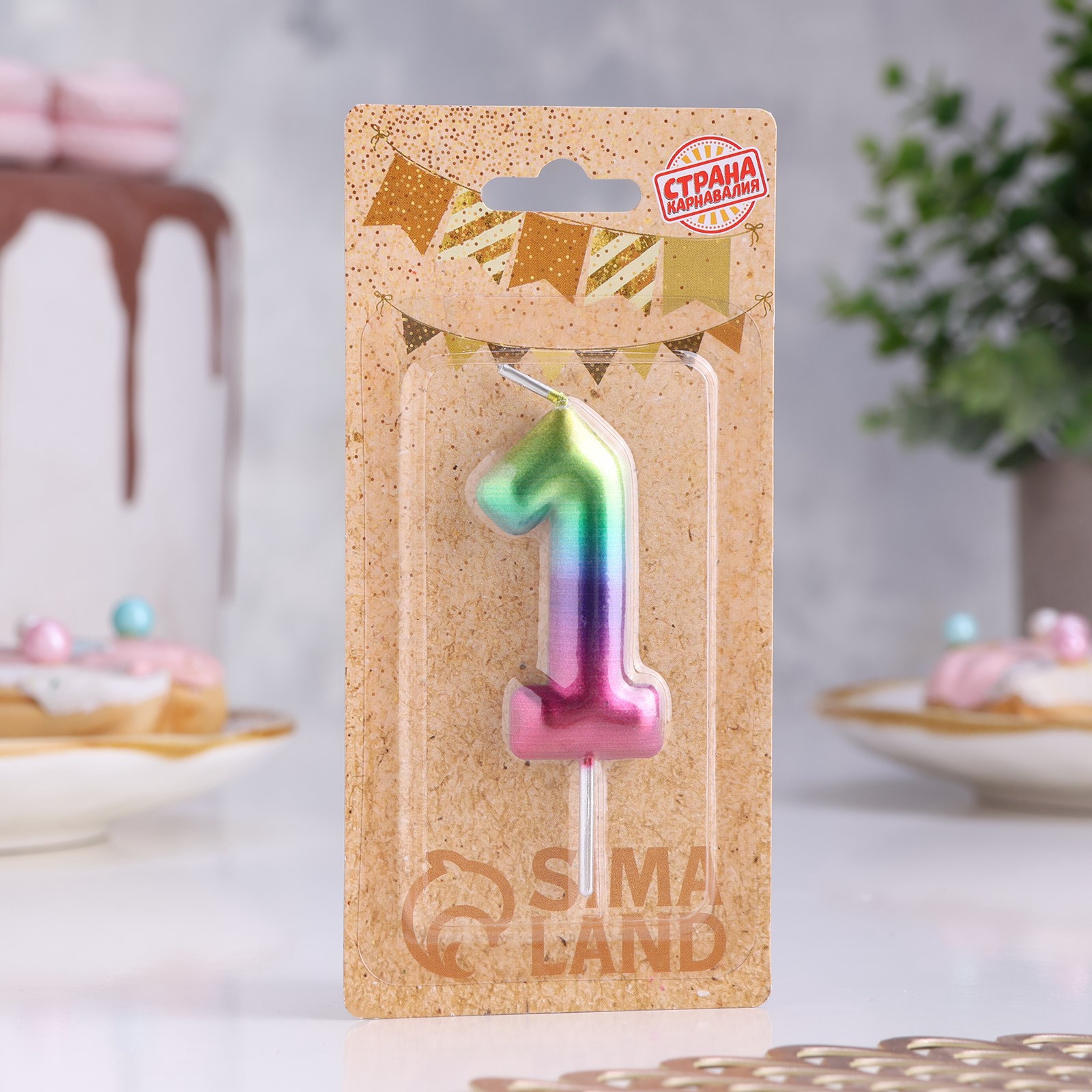Свеча в торт "Акварель", цифра 1, 6 см 120313