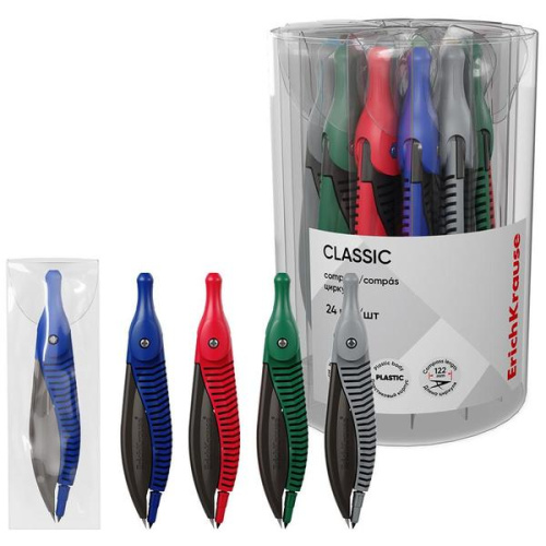 Циркуль пластиковый 12,2см, ПВХ чехол, ассорти, Classic, " Erich Krause "