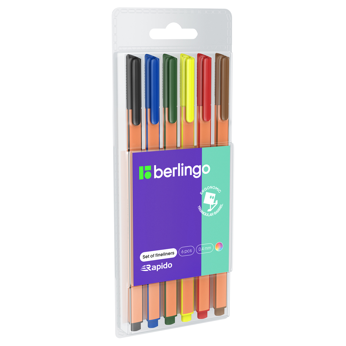 Набор капиллярных ручек Berlingo "Rapido" 06цв., 0,4мм, трехгран., европодвес