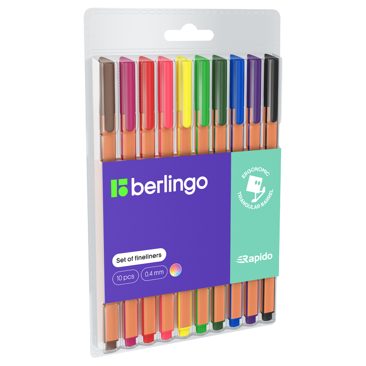 Набор капиллярных ручек Berlingo "Rapido" 10цв., 0,4мм, трехгран., европодвес