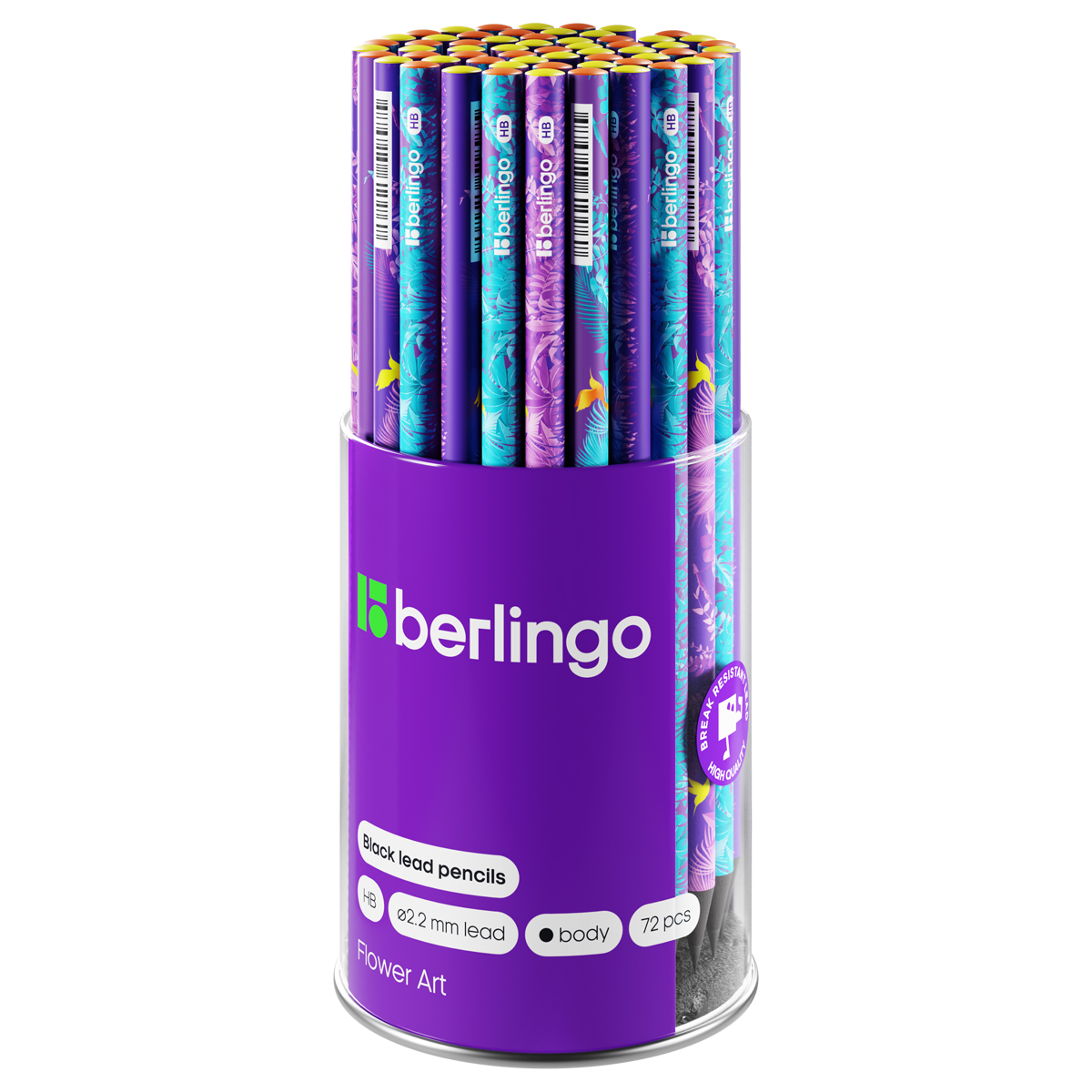 Карандаш ч/г Berlingo "Flower Art" HB, черное дерево, круглый, заточен., ассорти