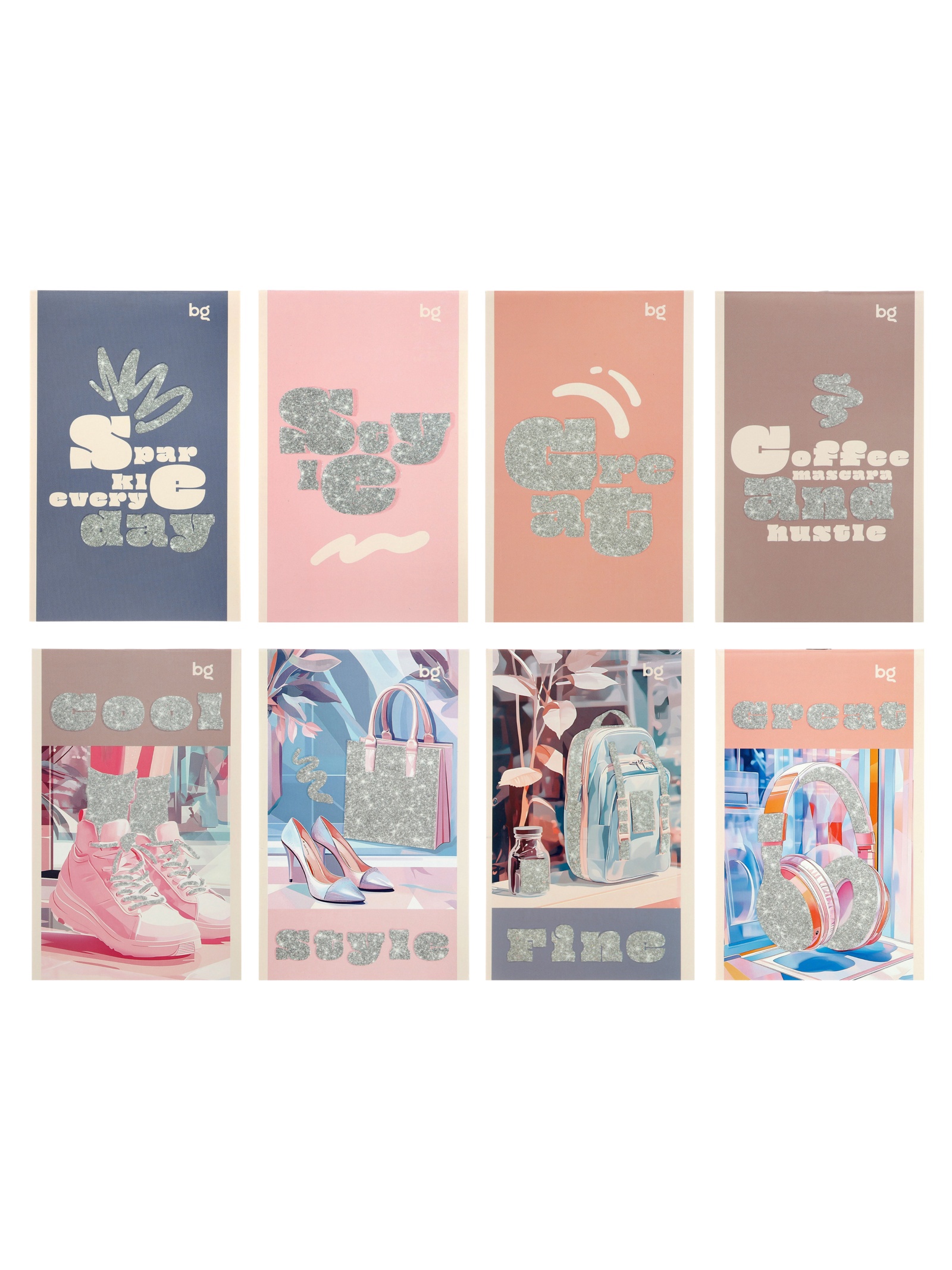Блокнот А6 32л кл на скрепке BG "Блестящий стиль", обл мел карт, глиттер, офсет МИКС 11015646