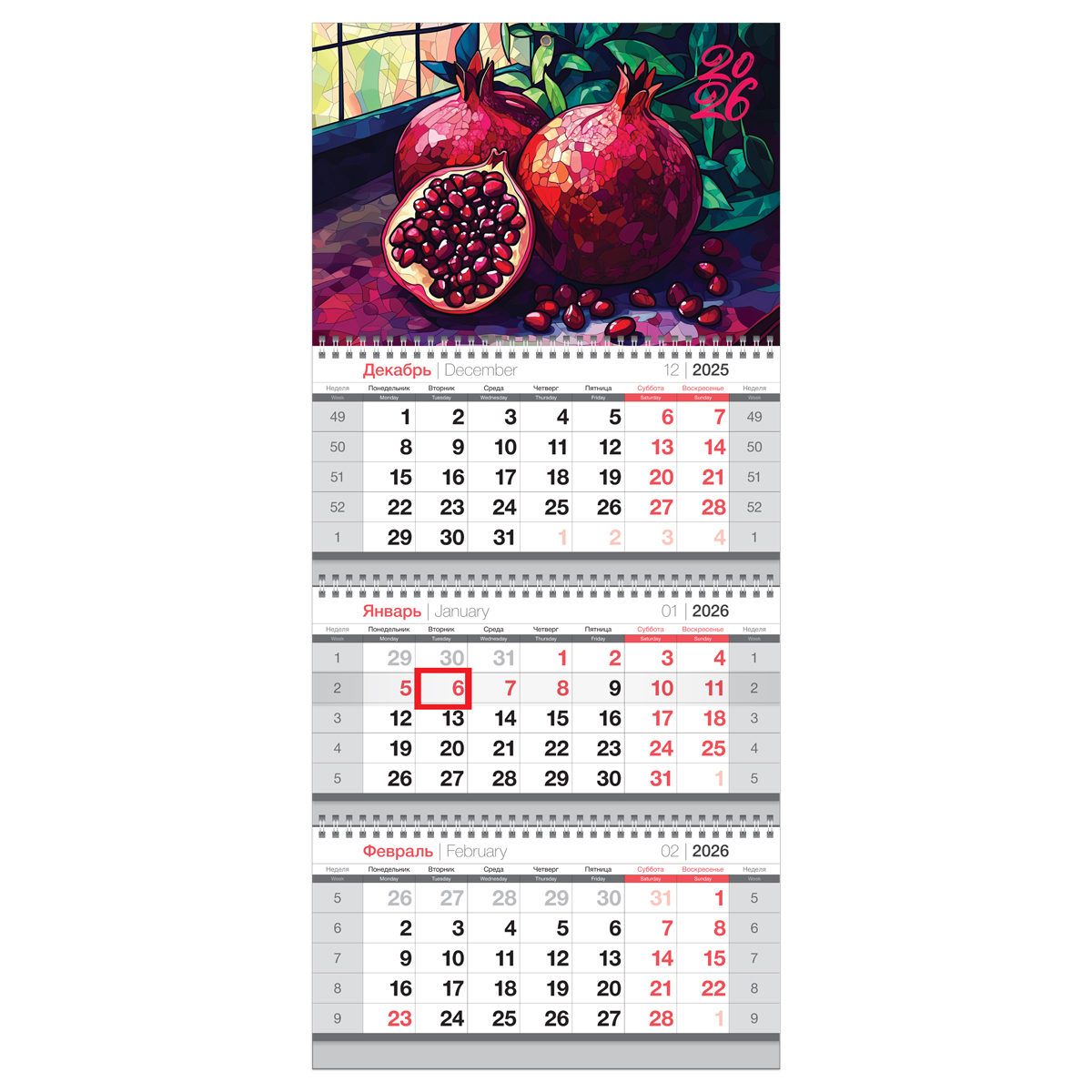 Календарь квартальный 3 бл. на 3 гр., 295*660 мм BG "Гранат", с бегунком, 2026г.