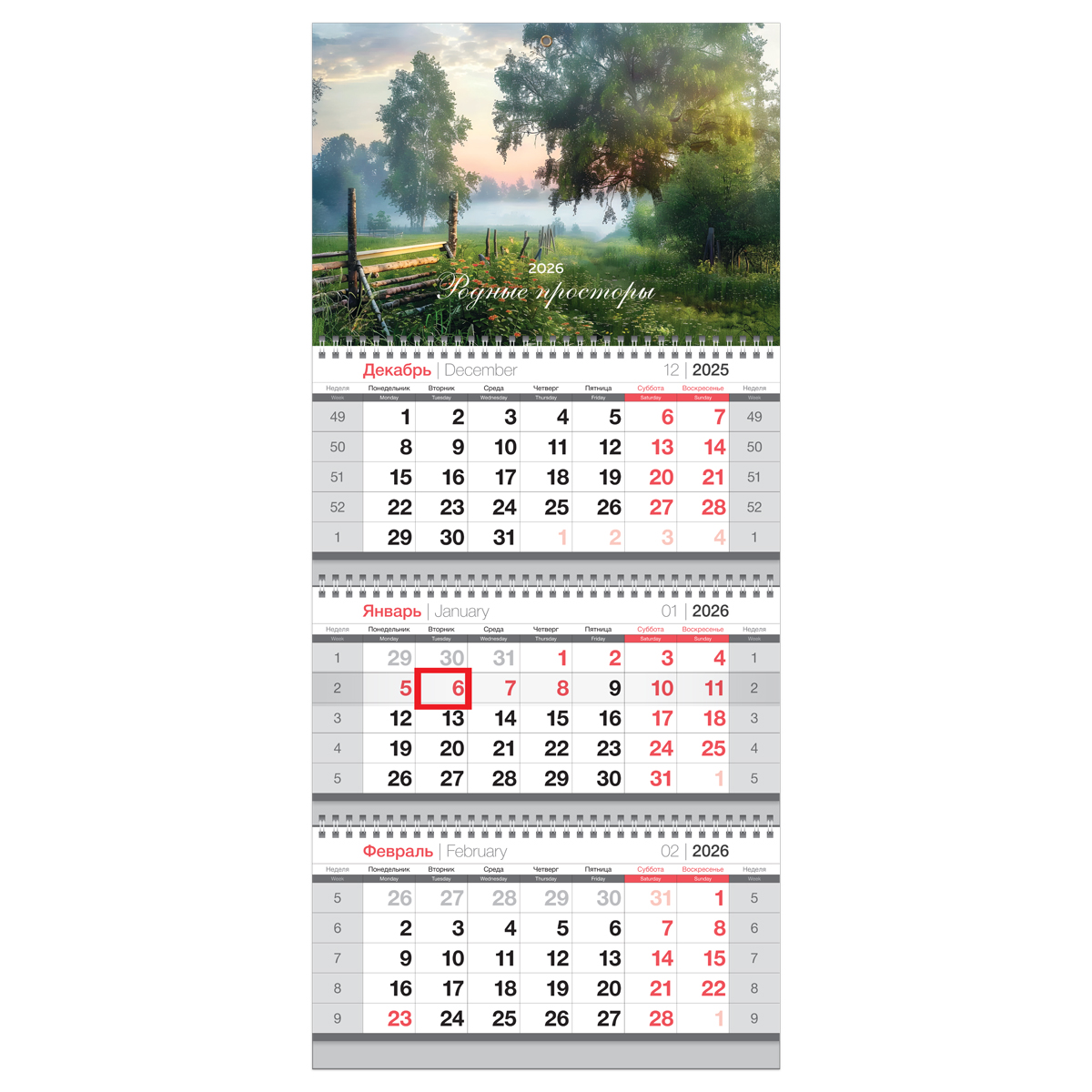 Календарь квартальный 3 бл. на 3 гр., 295*660 мм BG "Родные просторы", с бегунком, 2026г.