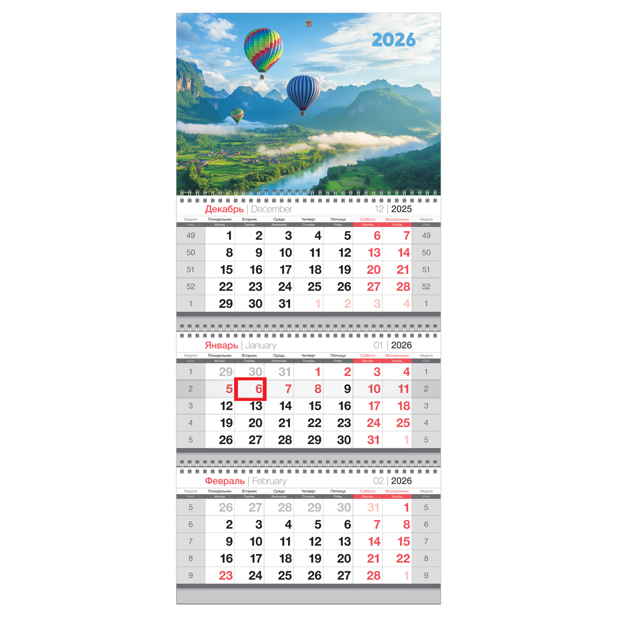Календарь квартальный 3 бл. на 3 гр., 295*660 мм BG "Полёт", с бегунком, 2026г.