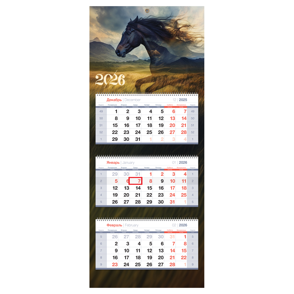 Календарь квартальный 3 бл. на 3 гр., 330*810 мм BG Premium "Свободный дух", с бегунком, 2026г.