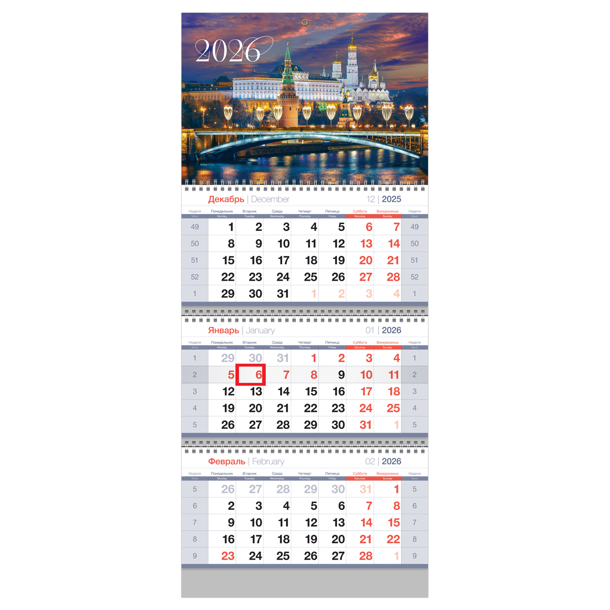 Календарь квартальный 3 бл. на 3 гр., 295*700 мм BG Standard "Москва", с бегунком, 2026г.