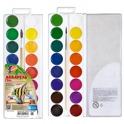 Краски акварельные с кистью ZOO 16цв " Луч " медовые, пластиковая упаковка, европодвес
