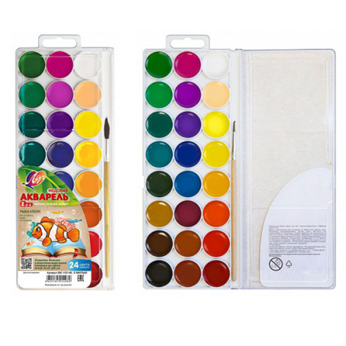 Краски акварельные с кистью ZOO 24цв " Луч " медовые, пластиковая упаковка, европодвес