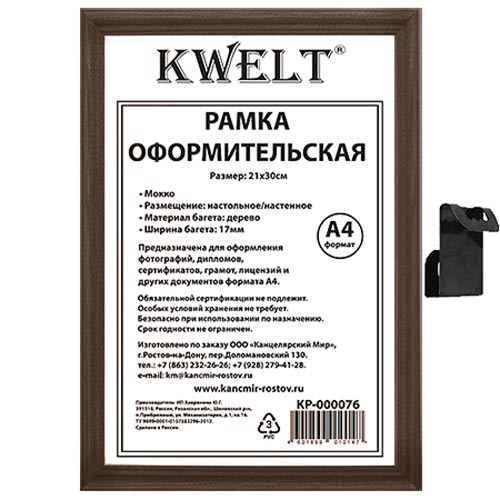 Фоторамка " KWELT " деревянная (МДФ) А4 21*30см мокко, стекло, сосновый багет, ширина багета - 17мм