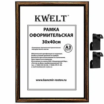 Фоторамка " KWELT " пластиковая 30*40см серия 1 бронза, стекло, ширина багета - 14мм