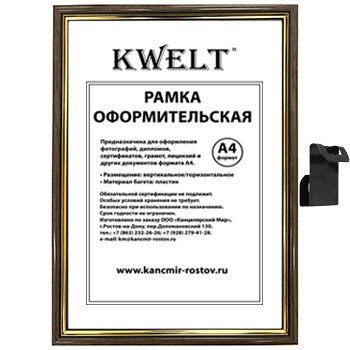 Фоторамка " KWELT " пластиковая А4 21*30см серия 5 ольха, стекло, ширина багета - 14мм, золото