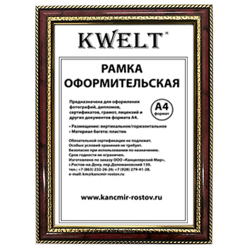 Фоторамка " KWELT " пластиковая А4 21*30см серия 7 яшма, стекло, ширина багета - 28мм, золото