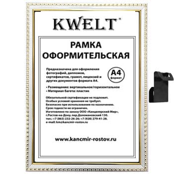 Фоторамка " KWELT " пластиковая А4 21*30см серия 9 белая, стекло, ширина багета - 16мм, золото