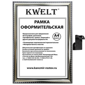 Фоторамка " KWELT " пластиковая А4 21*30см серия 9 серебро, стекло, ширина багета - 16мм