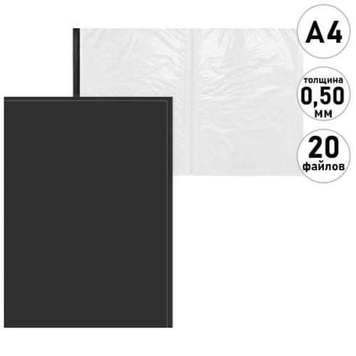 Папка 20файлов " KWELT " А4 черная, пластик 0,5мм, индивидуальный штрихкод