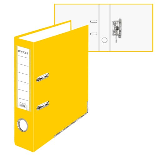 Папка-регистратор А4 " KWELT " сборная 50мм желтая, ПВХ, пластиковый карман со сменной этикеткой, металлическая окантовка