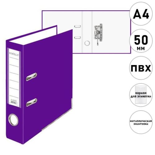 Папка-регистратор А4 " KWELT " сборная 50мм фиолетовая, ПВХ, пластиковый карман со сменной этикеткой, металлическая окантовка