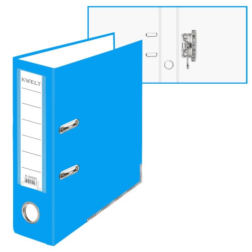 Папка-регистратор А4 " KWELT " сборная 75мм голубая, ПВХ, пластиковый карман со сменной этикеткой, металлическая окантовка