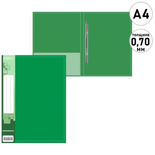 Папка-скоросшиватель " KWELT " А4 Standart зеленая, пластик 0,7мм, бумажная вставка во внешний кармашек, внутренний карман, индивидуальный штрихкод