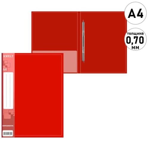 Папка-скоросшиватель " KWELT " А4 Standart красная, пластик 0,7мм, бумажная вставка во внешний кармашек, внутренний карман, индивидуальный штрихкод