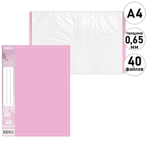 Папка 40файлов " KWELT " А4 Pastel пион, пластик 0,65мм, бумажная вставка во внешний кармашек, индивидуальный штрихкод