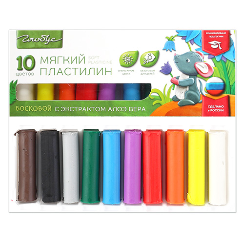 Пластилин " Глобус " Супермягкий, с экстрактом алоэ вера 10 цветов 150грамм, картонная упаковка