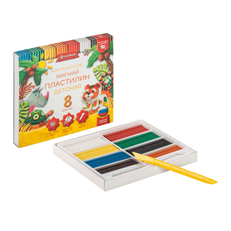 Пластилин " Глобус " Детский классический повышенной мягкости 8цветов 120грамм,картонная упаковка