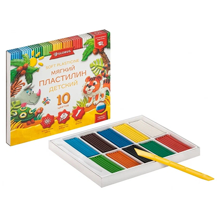 Пластилин " Глобус " Детский классический повышенной мягкости 10цветов 150грамм,картонная упаковка