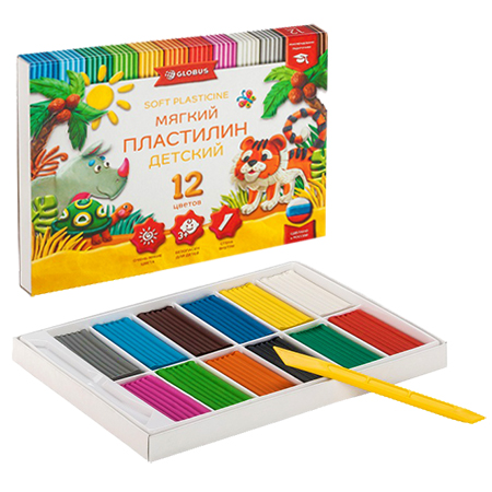 Пластилин " Глобус " Детский классический повышенной мягкости 12цветов 180 грамм,картонная упаковка