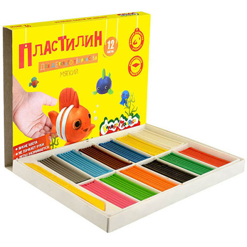 Пластилин " Каляка-Маляка " 12цв 180г со стеком, оптимальная мягкость, отсутствие запаха, картонная упаковка