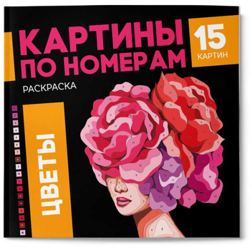 Раскраска " Феникс " 215*215мм 16л по номерам Цветы, обложка- мелованный картон, блок- офсет, склейка