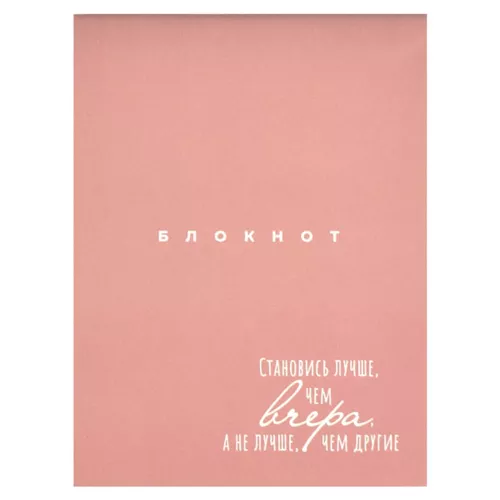 Блокнот МАЛЫЙ ФОРМАТ А6 32л " Феникс " Лучше чем вчера, пепельно-розовый, клетка, обложка - мелованный картон, на скобе, белый дизайнерский блок 65г/м2, 105*140мм