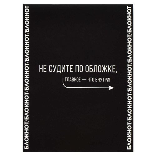 Блокнот МАЛЫЙ ФОРМАТ А6 32л " Феникс " Фразы с харакетом Не судите по обложке, черный, клетка, обложка - мелованный картон, на скобе, белый дизайнерский блок 65г/м2, 105*140мм