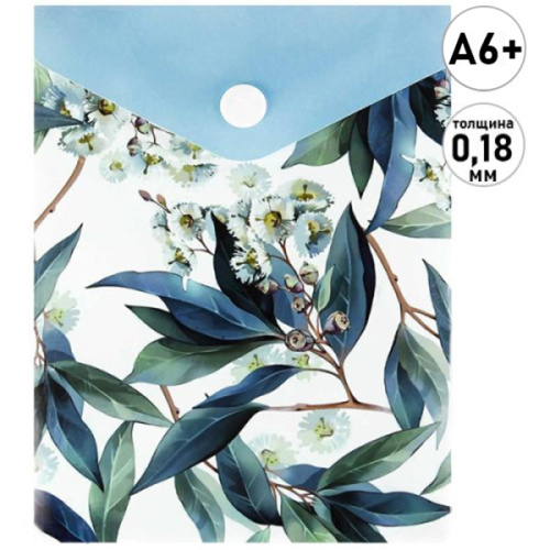 Папка на кнопке " Феникс " МАЛЫЙ ФОРМАТ А6+ Эвкалипт, пластик 0,18мм, 1 отделение, непрозрачная, 114*158мм