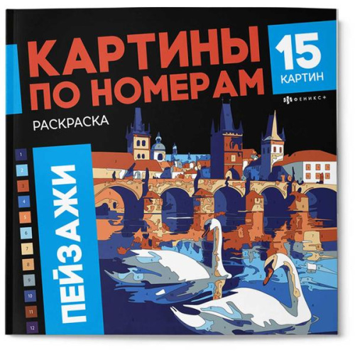 Раскраска " Феникс " 215*215мм 16л по номерам Пейзажи, обложка- мелованный картон, офсет, склейка