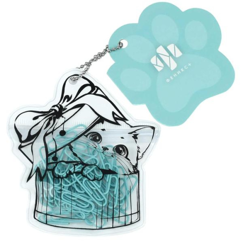 Скрепки " Феникс " 28мм металлические мятные 40шт Котенок в коробке, индивидуальная упаковка