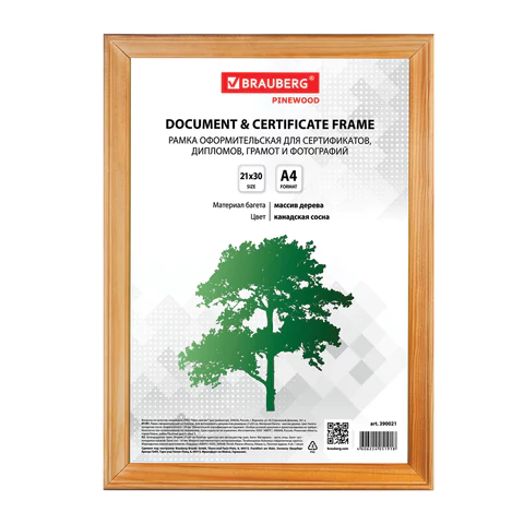 Рамка 21*30см, дерево, багет 18 мм, BRAUBERG HIT, канадская сосна, стекло, 390021