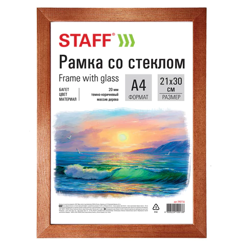Рамка 21*30см, дерево, багет 20 мм, STAFF, темно-коричневая, стекло, 390716