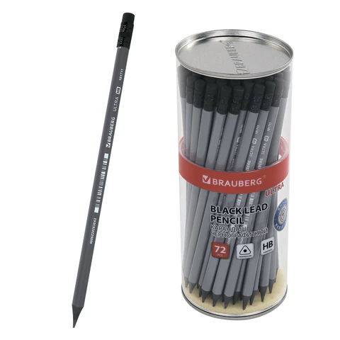 Карандаш чернографитный BRAUBERG "ULTRA", 1 шт., HB, с ластиком, пластиковый, 181711