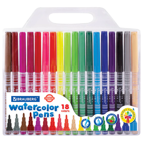 Фломастеры BRAUBERG PREMIUM, 18 цветов, КОРПУС С ПЕЧАТЬЮ, ПВХ-упаковка, 151943