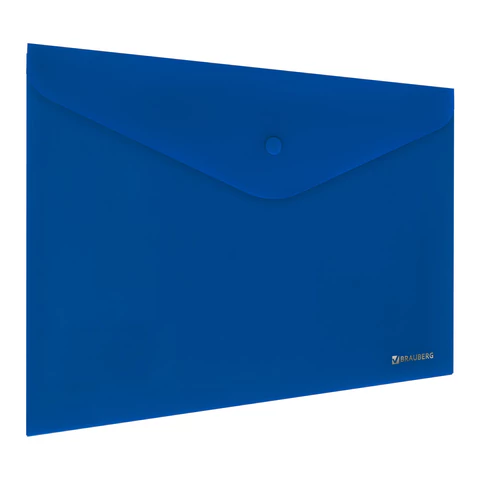 Папка-конверт с кнопкой BRAUBERG SUPER, А4, матовая непрозрачная синяя, ПРОЧНАЯ 0,2мм, 272875