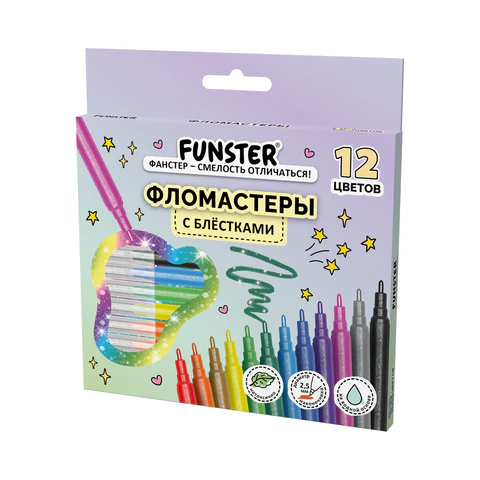 Фломастеры с блестками FUNSTER (ФАНСТЕР) "GLITTER" 12 цветов, ударопрочный наконечник, 152629