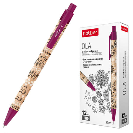 Карандаш механический " Hatber " Ola 0,5мм ассорти с ластиком