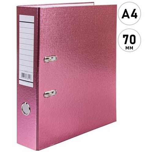 Папка-регистратор А4 " Hatber " Metallic сборная 70мм розовая, бумвинил, этикетка для маркировки