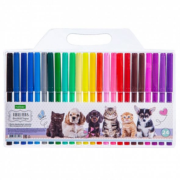 Фломастеры " Hatber " ECO Верные друзья 24цв круглые, вентилируемый колпачок, блистер, европодвес