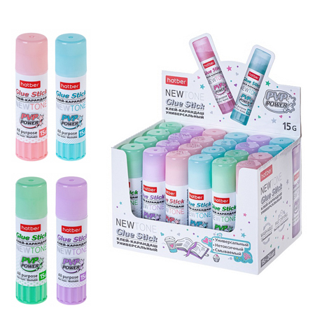 Клей-карандаш " Hatber " NEWtone 15гр основа PVP, 4 дизайна, картонный дисплей