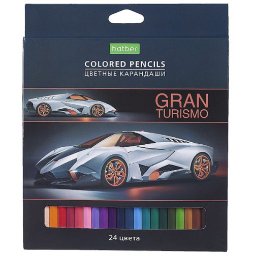 Карандаши цветные деревянные ECO Gran Turismo 24цв " Hatber " шестигранные, картонная упаковка, европодвес