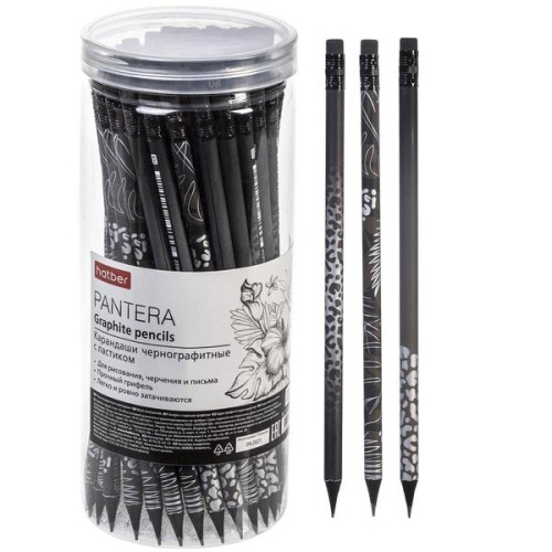 Карандаш ч/гр " Hatber " Pantera НВ ассорти, с ластиком, круглый, деревянный, цвет корпуса- ассорти, заточенный, в пластиковой тубе